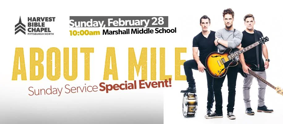 About A Mile, an incredible up and coming Christian rock band,will be performing original songs and leading worship at Harvest Bible Chapel at our Sunday morning worship service on February 28th at 10am!
