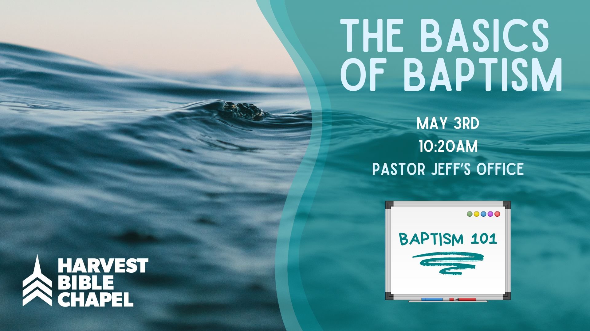 Our next Baptism Service is coming up on May 10th! Maybe you or even your children have questions about baptism: Who should be baptized? What is baptism about anyway? Why don't we baptize babies here at Harvest? Those questions and more will be answered in a 30-minute class called The Basics of Baptism.